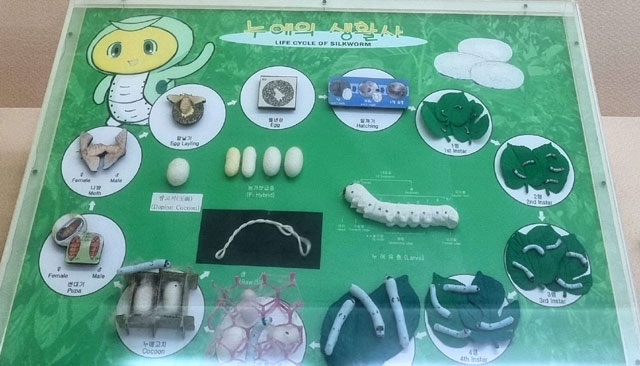 누에는 나방이 되어보지 못하고 뽕잎만 먹다가 고치가 되면 실을 얻기 위해 삶아버리며, 남은 유충은 고단백 영양식인 번데기로 먹는다. 그래서 뽀로로에서 '꼬물이' 편을 보고 자란 감수성이 풍부한 아이에게는 양잠에 대해 자세히 알려주고 싶지는 않을 것이다.