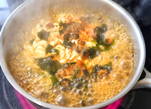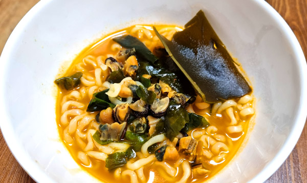 조리가 간단한데도 국물이 심심하지 않고 건홍합을 씹으며 옛날 너구리의 맛을 어느 정도 살릴 수 있다.