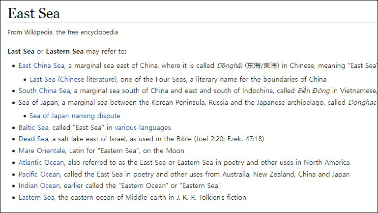 동중국해도 중국에서 부르는 동해라서 붙여졌고, 베트남에서는 남중국해를 동해라 부른다. 덴마크와 독일은 발트해를 동해라 하고, 일본에는 동해 지역이 따로 있다. 그렇다고 극동해(Far East Sea)도 아니고, 북해(North Sea)처럼 유럽 주요 7개 국가가 맞닿고 있어서 세계적으로 상징성 역사성 대표성을 띄는 것도 아니라서, 동해는 한반도에서 말고는 부를 이유가 없는 보통명사에 가깝다.
