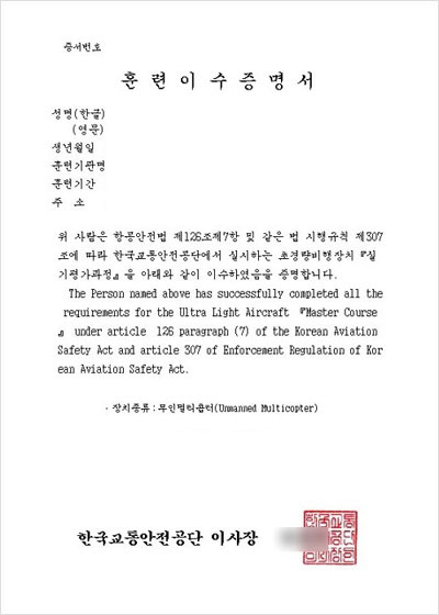 초경량비행장치 무인멀티콥터 전문교육기관의 일반적인 교육비