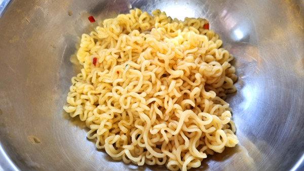 라면 면발은 물 속에서 뿐만 아니라 공기 노출로도 퍼진다. 반드시 면이 약간 덜 익었을 때 물에서 먼저 건져내는 것이 꼬들꼬들한 면발에도 중요하고, 핵심 중에 핵심이다. 특히 여러 개를 조리할 때 아주 유용한 필수적인 방법이다. 라면은 냄비에서 면을 건져먹는게 아니라, 그릇에 담긴 면에 국물을 부어먹는 것이다.
