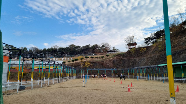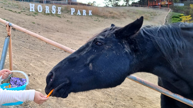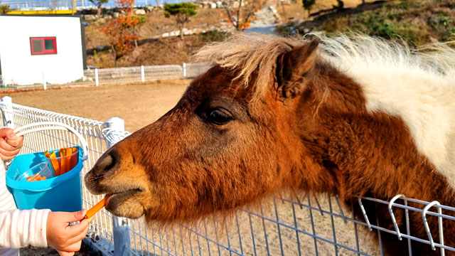 어린이와 말과의 교감을 위한 선물, 영천 홀스파크(HORSE PARK)는 주말과 공휴일에만 운영된다. 입장권에는 말먹이가 기본 포함되어 있고, 체험 가능 횟수(1회, 2회, 3회)에 따라 금액이 바뀐다.