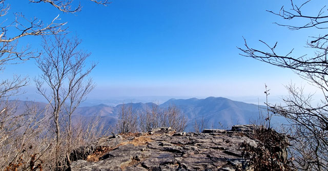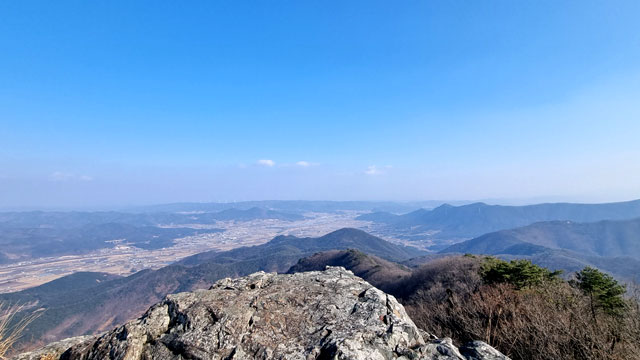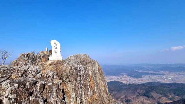 유명 산들도 수풀에 가려져 정상석만 덩그러니 있는 곳이 많은데 동서남북의 조망이 모두 탁 트여 있는 바위 꼭대기라 쾌감이 절정에 달한다.