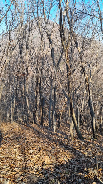 겨울 자도봉어의 등로는 낙엽이 쌓여있어 미끄럽고 자칫 길을 잘못들 수도 있다.