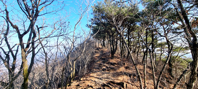 그러한 쾌감의 반대급부일까. 봉좌산에서 어래산으로 가는 길이 멀고 험난하다. 이름 모를 산봉우리를 여러 개 넘으며 지쳐간다.