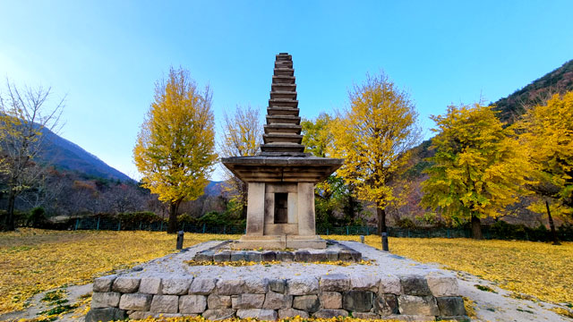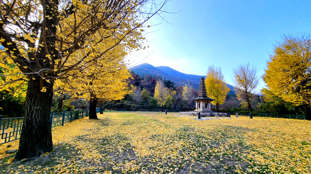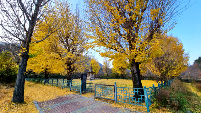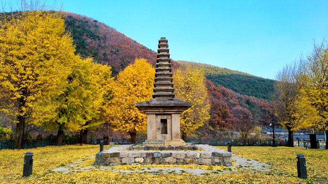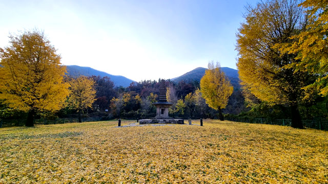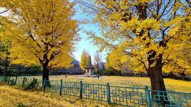 서원 뒷 길로 어느 정도 이동해야 하고 시골 구석에 자리 잡아 의외로 잘 알려져 있지 않은 이 석탑은 주변의 노랗게 익은 은행나무와 바닥에 깔린 은행잎들의 향연이 혼자 다른 세계에 온 것처럼 착각에 들게 하는 아름다운 곳이다.