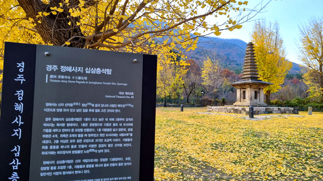 경주 안강은 옥산서원이 유명하여 서원만 다녀가는 경우가 많은데, 안쪽으로 조금 더 들어가면 국보 제40호 정혜사지 13층석탑을 만날 수 있다.