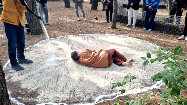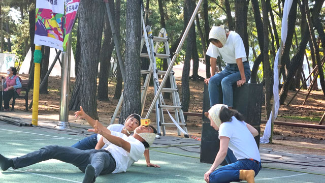 처음엔 숲 한복판에서 뭐하는가 했다. 관객들은 배우를 둘러싸고 관찰하며 졸졸 따라다니며 감상했고, 이동형 거리극을 처음 관람하는 입장에서 이런 기회는 희소성이 넘쳐 보였다.