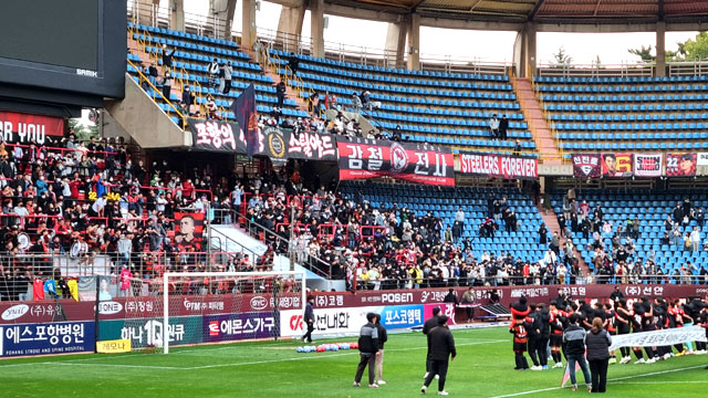 갑자기 쌀쌀해진 날씨에도 시즌 최종전을 위해 경기 시작 2시간 전부터 많은 인파가 찾은 포항 스틸야드는 세월이 지나도 여전히 거대한 용광로처럼 관객을 압도했다. 항상 '최초'라는 영예의 기록을 간직한 한국 최고의 명문구단 포항스틸러스는 스틸야드와 함께 프로축구의 선진화를 변함없이 모범적으로 선도하며 지역민의 사랑을 받고 있었다.
