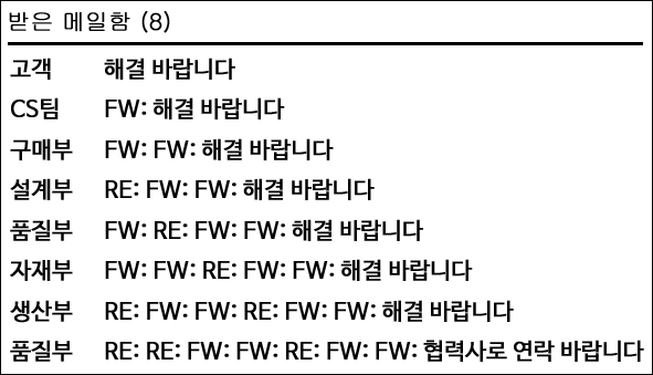 공무원처럼 사고 안치면서 철밥통 안고 오래 다니려는 사람이 많으므로 아무도 책임을 지려하지 않고, 문제가 생기면 각 부서는 서로 미루다가 결국 하청 불러서는 알아서 해결하라고 한다. 고객에게 클레임을 받으면 대기업의 그 많은 인원이 강 건너 불구경하다가 내용을 그대로 하청에게 전달해주는 것이 전부인 것이다. 그럼 하청은 또 재하청을 불러서 시키거나, 불량을 빌미로 결제대금을 미루고 절삭하는 악순환이 이어진다.
